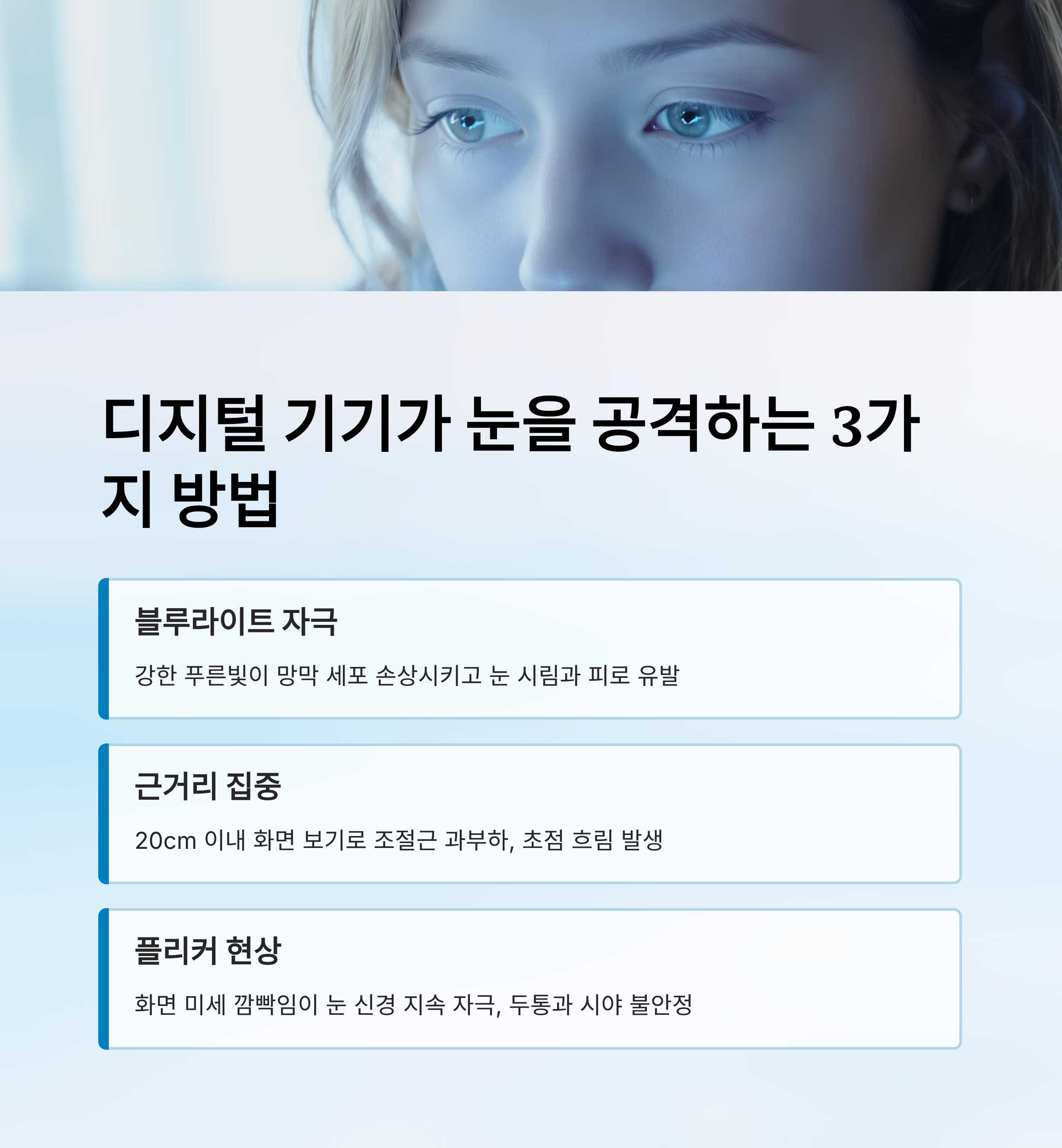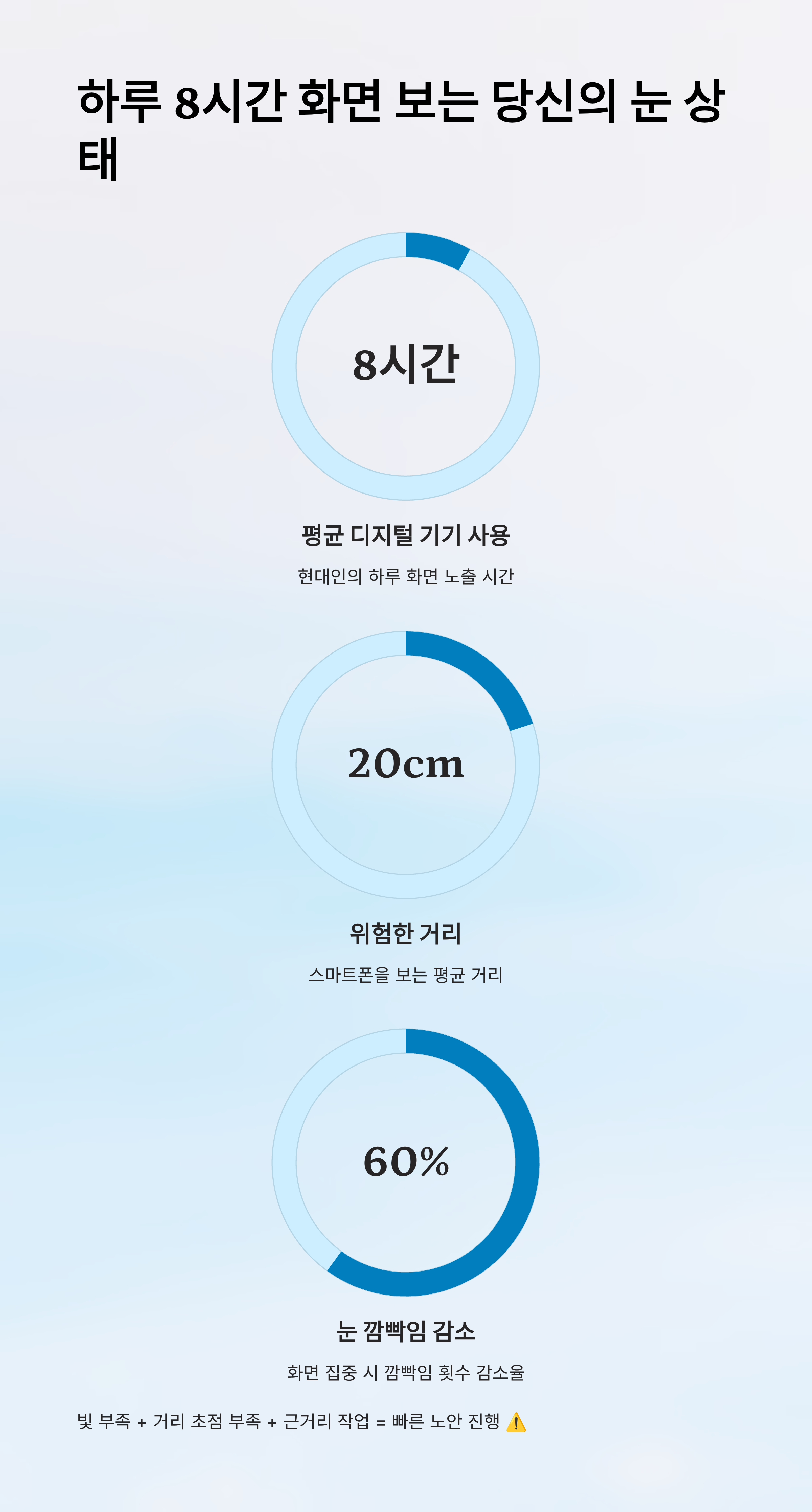 우리는 하루 평균 8시간 이상을 스마트폰이나 컴퓨터 앞에서 보내고 있어요. 이처럼 디지털 기기 사용이 일상화되면서 눈에 지속적인 자극이 가해지고 있어요. 특히 블루라이트는 눈에 악영향을 주는 대표적인 요인이에요. 강한 푸른빛은 망막을 자극하고, 장시간 노출되면 시력 저하로 이어질 수 있어요.