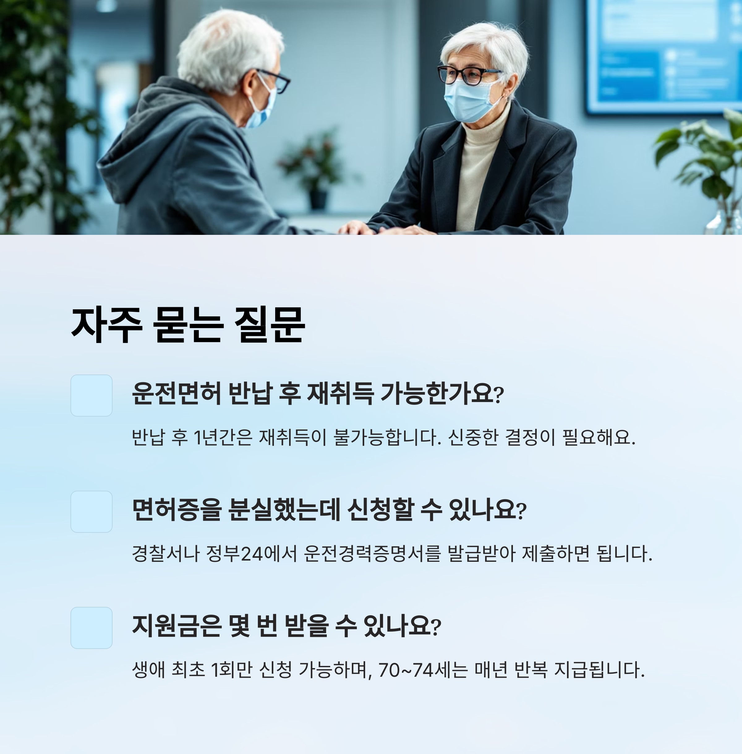 A4. 반납 후 1년간은 운전면허를 다시 취득할 수 없어요. 신중하게 결정해야 해요.