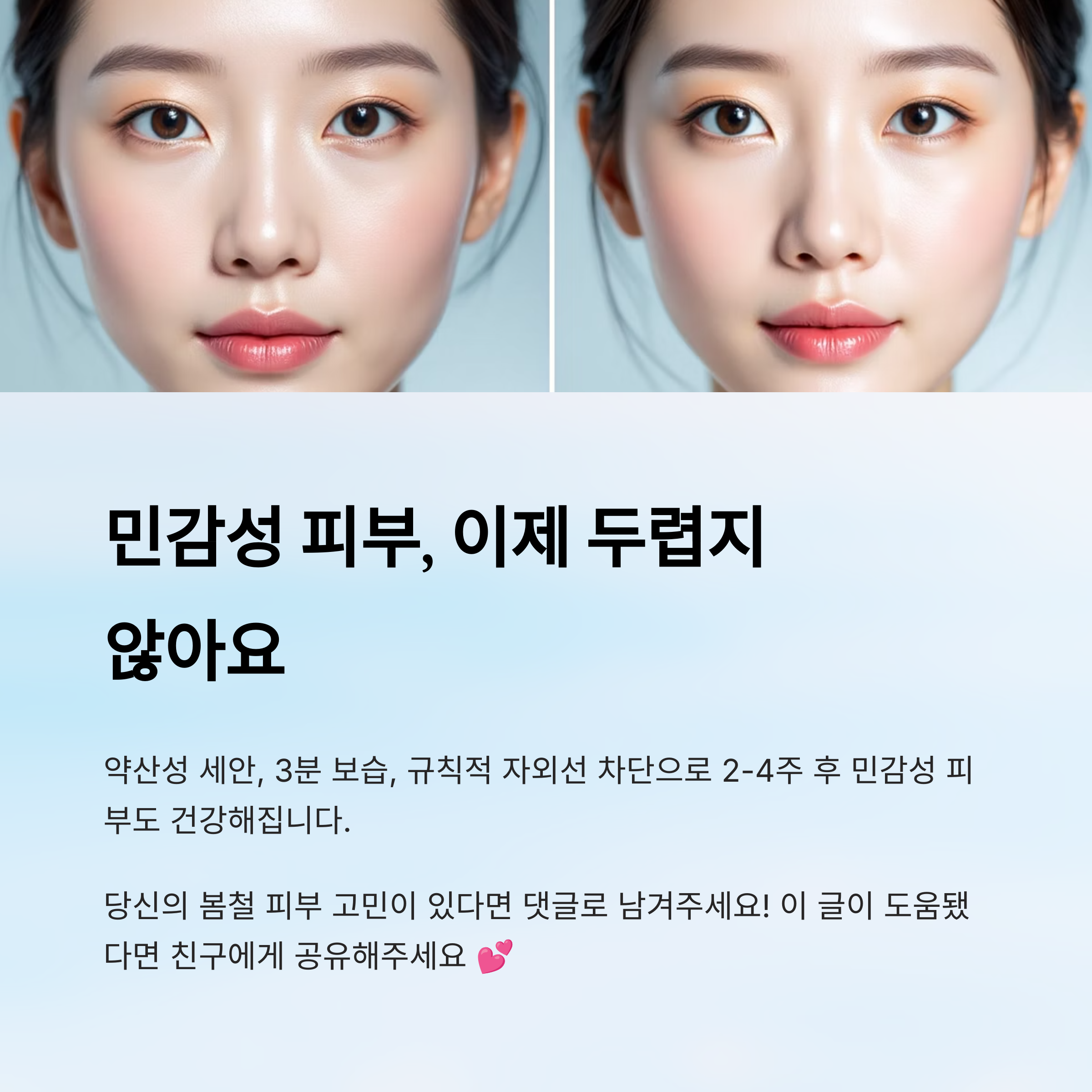 이 글에서는 봄철 민감성 피부를 위한 클렌징부터 보습, 자외선 차단까지 효과적인 홈케어 루틴을 하나하나 알려줄게요. 실생활에서 바로 실천할 수 있는 꿀팁들도 듬뿍 담았어요.😊