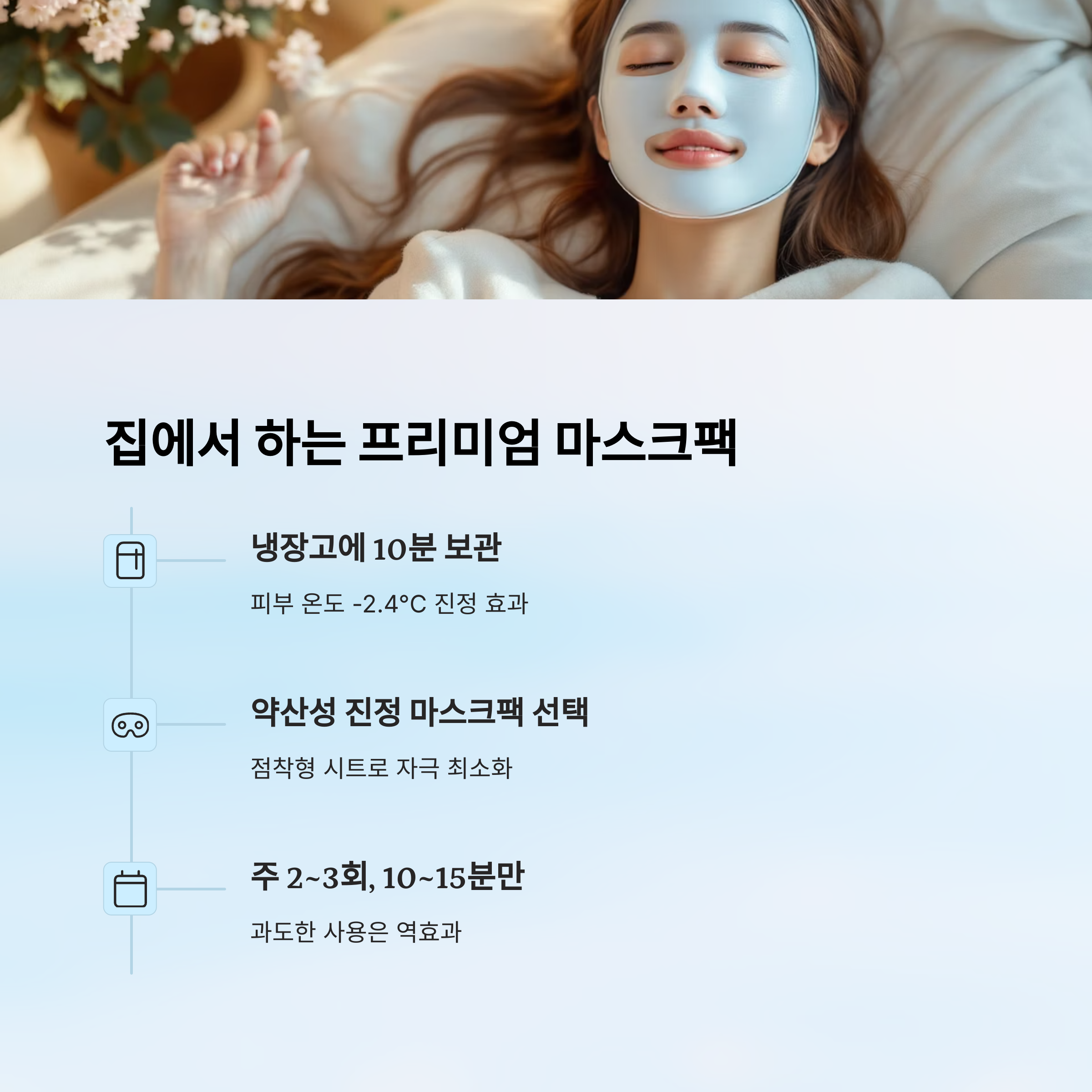 피부가 예민한 날에는 무리한 화장품 사용보다 ‘마스크팩’으로 간단하게 진정시키는 방법이 좋아요. 하루에 1팩은 과하지만, 주 2~3회 정도 꾸준히 해주는 게 가장 효과적이죠.