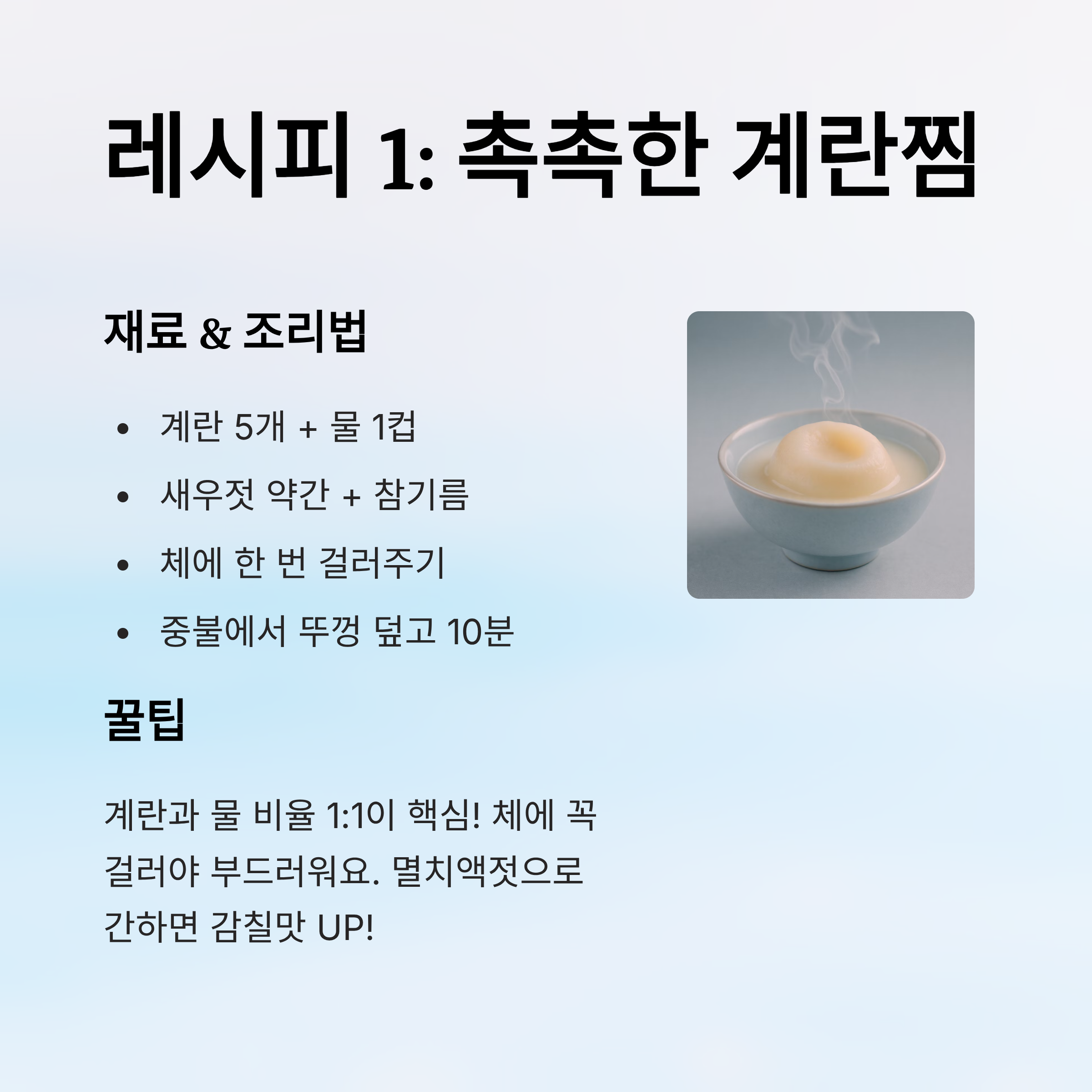 하나하나 따라 하다 보면 요리 실력도 쑥쑥 늘고, 계란 소진도 똑똑하게 할 수 있어요. 자취생, 주부, 누구나 할 수 있는 쉬운 레시피니까 부담 갖지 말고 도전해보세요!