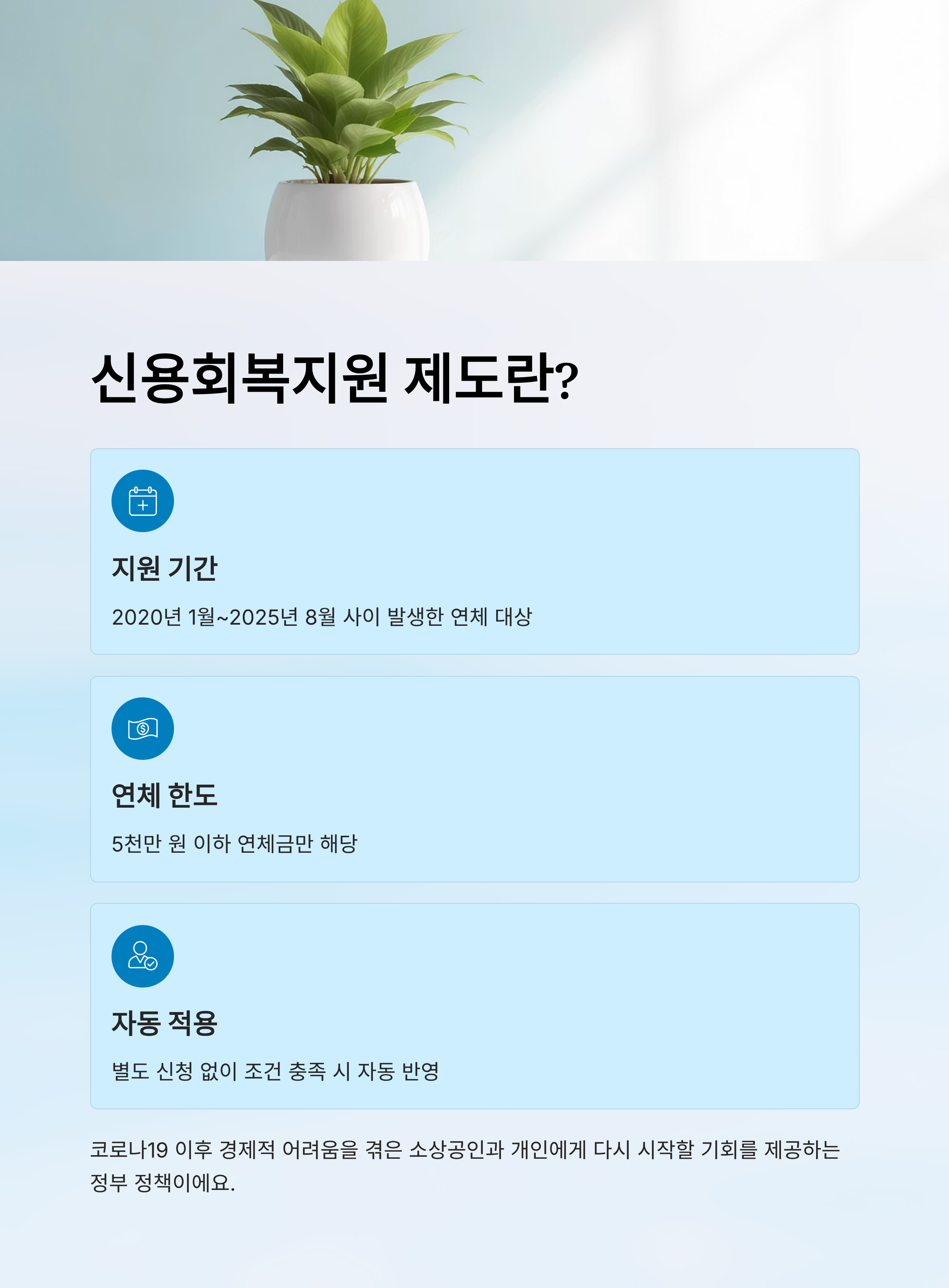 2025년 신용회복지원은 연체 경험이 있는 사람들에게 ‘다시 시작할 수 있는’ 기회를 주는 정책이에요. 이 제도는 특히 코로나19 이후 경제적 어려움을 겪은 소상공인과 개인에게 실질적인 도움을 주기 위해 만들어졌어요.