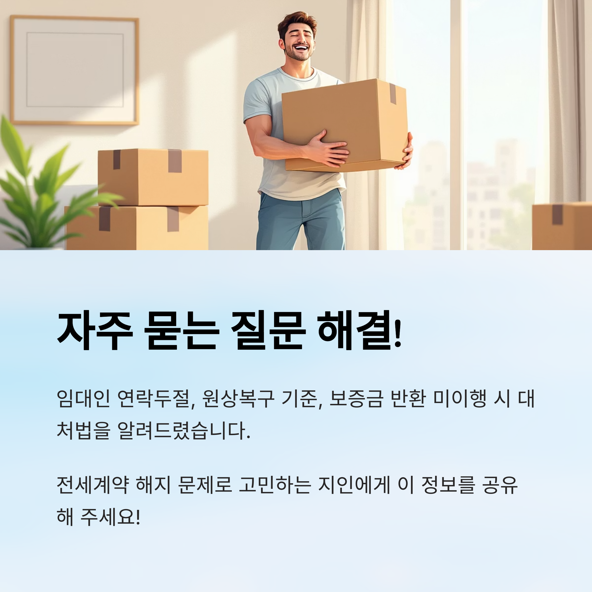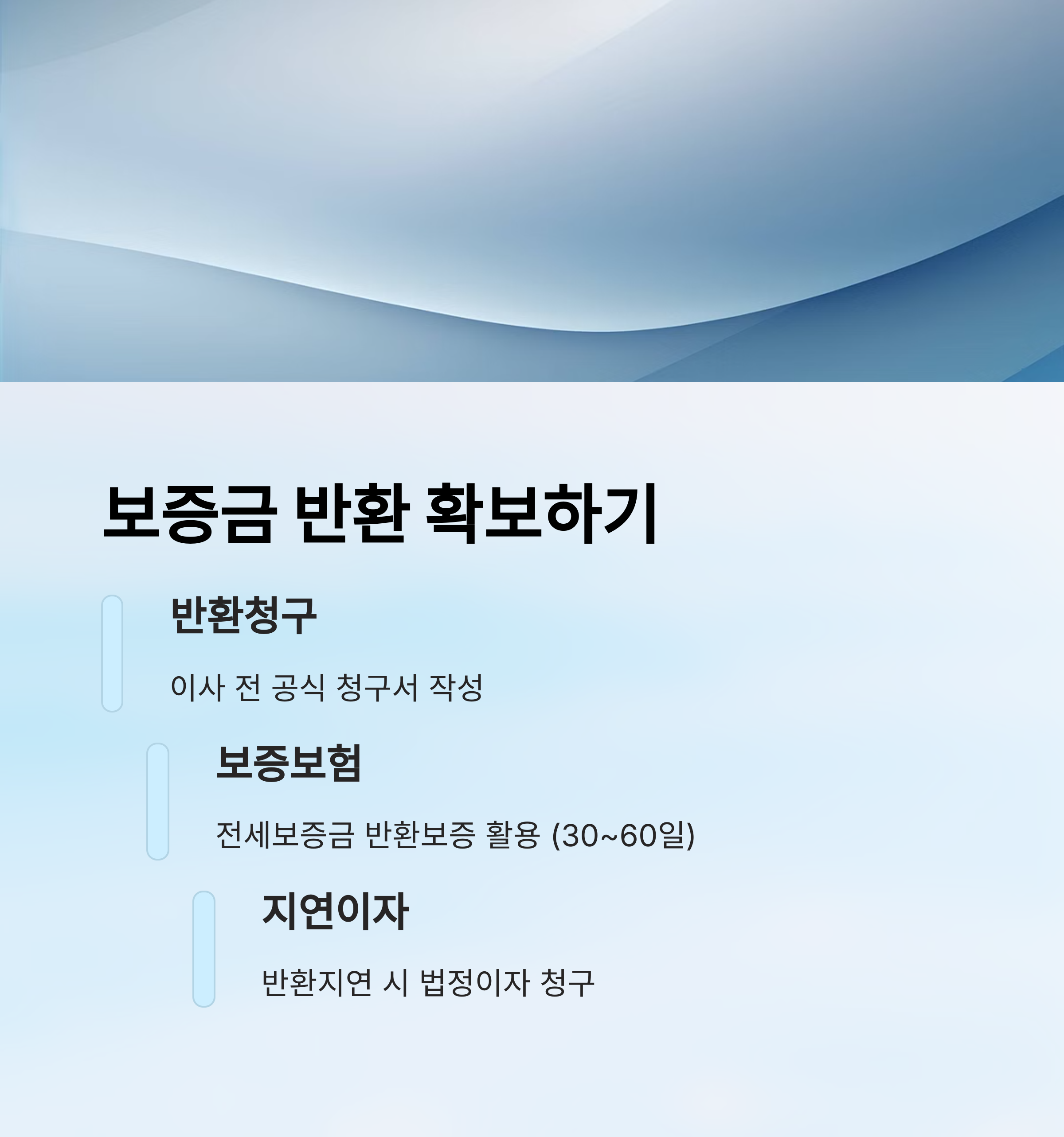 | 보증금 반환 | 전세계약 해지가 완료되면 보증금을 돌려받아야 해요. |