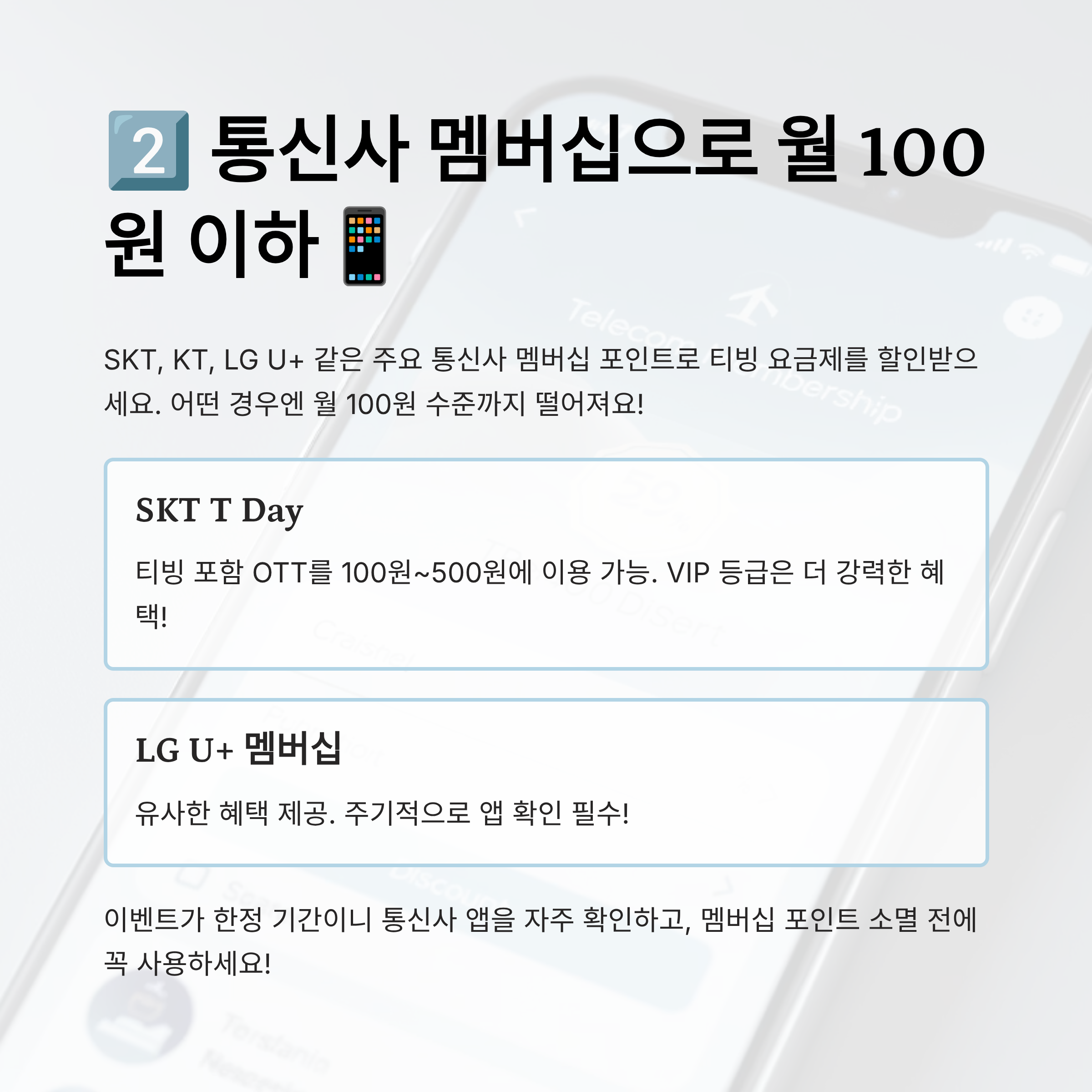 2️⃣ 통신사 멤버십으로 월 100원 이하📱