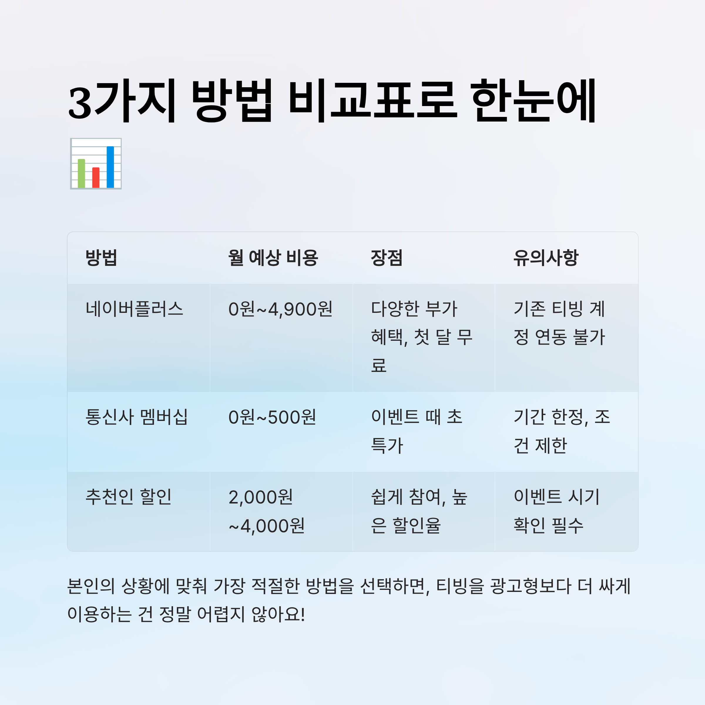 📊 티빙 싸게 보는 3가지 방법 비교표