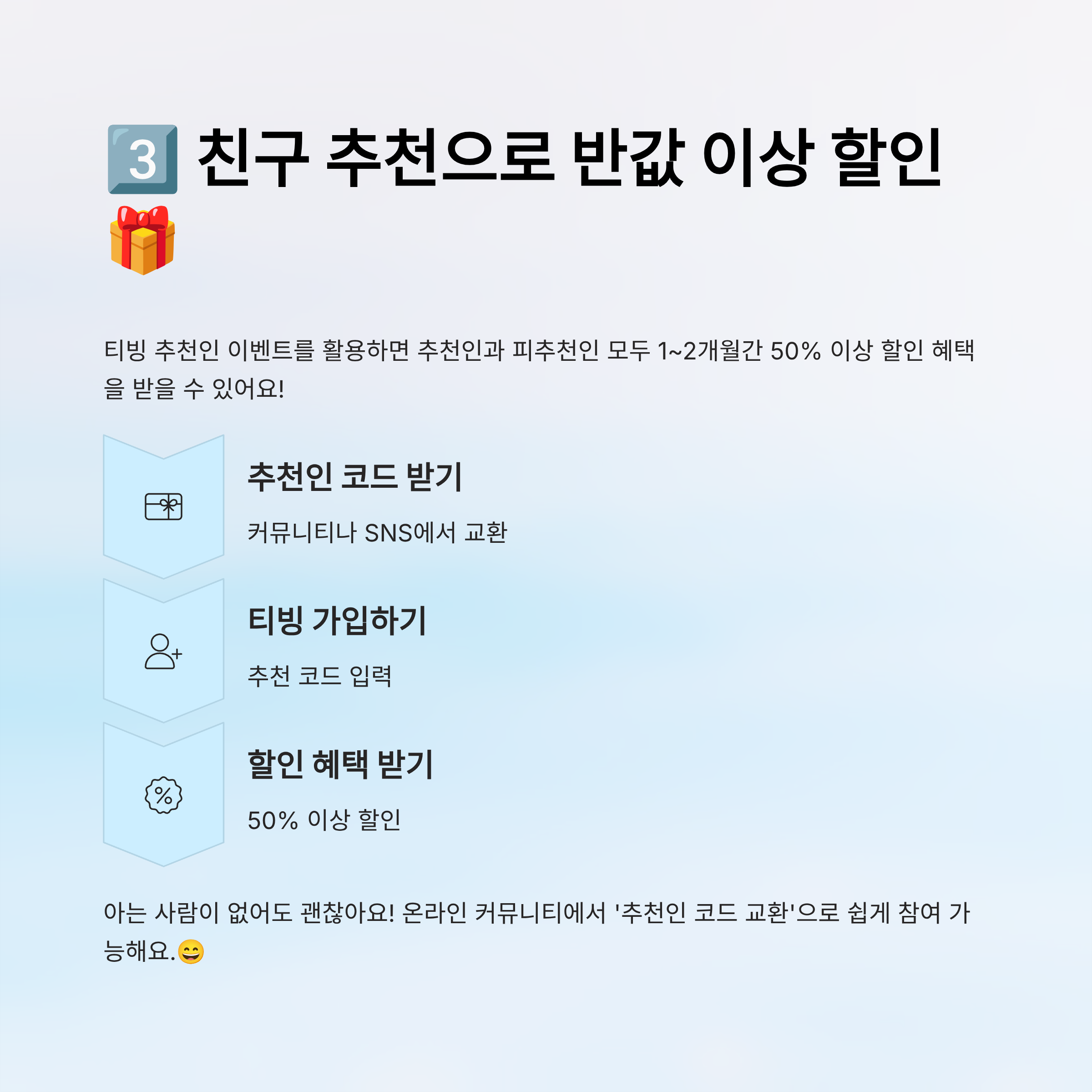 3️⃣ 친구 추천으로 반값 이상 할인받기🎁