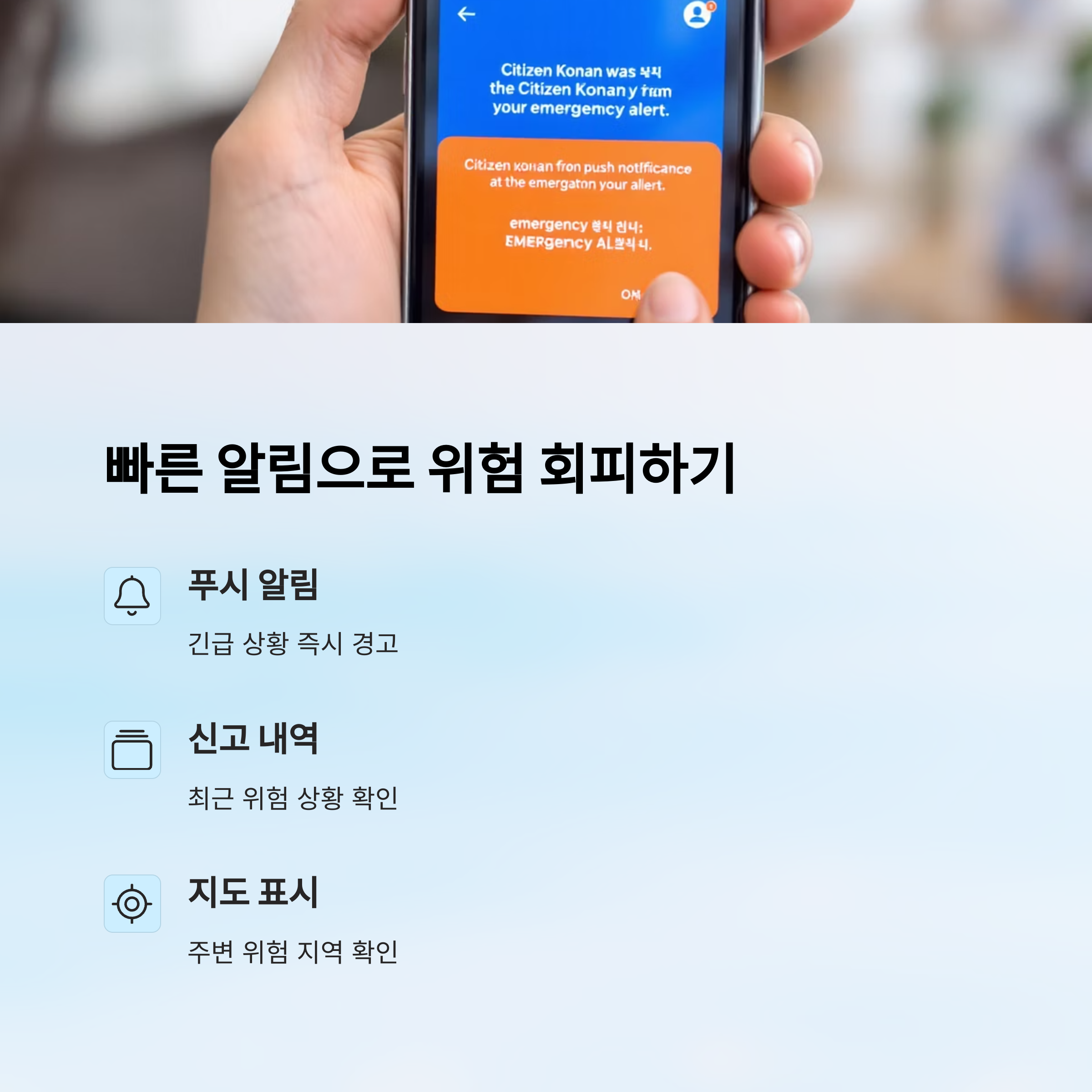 위급한 상황에서는 신속한 대응이 중요해요. 시티즌코난 앱에는 즉각적으로 도움을 요청할 수 있는 기능이 탑재되어 있어요. 이를 잘 활용하면 위험을 피하는 데 큰 도움이 돼요.