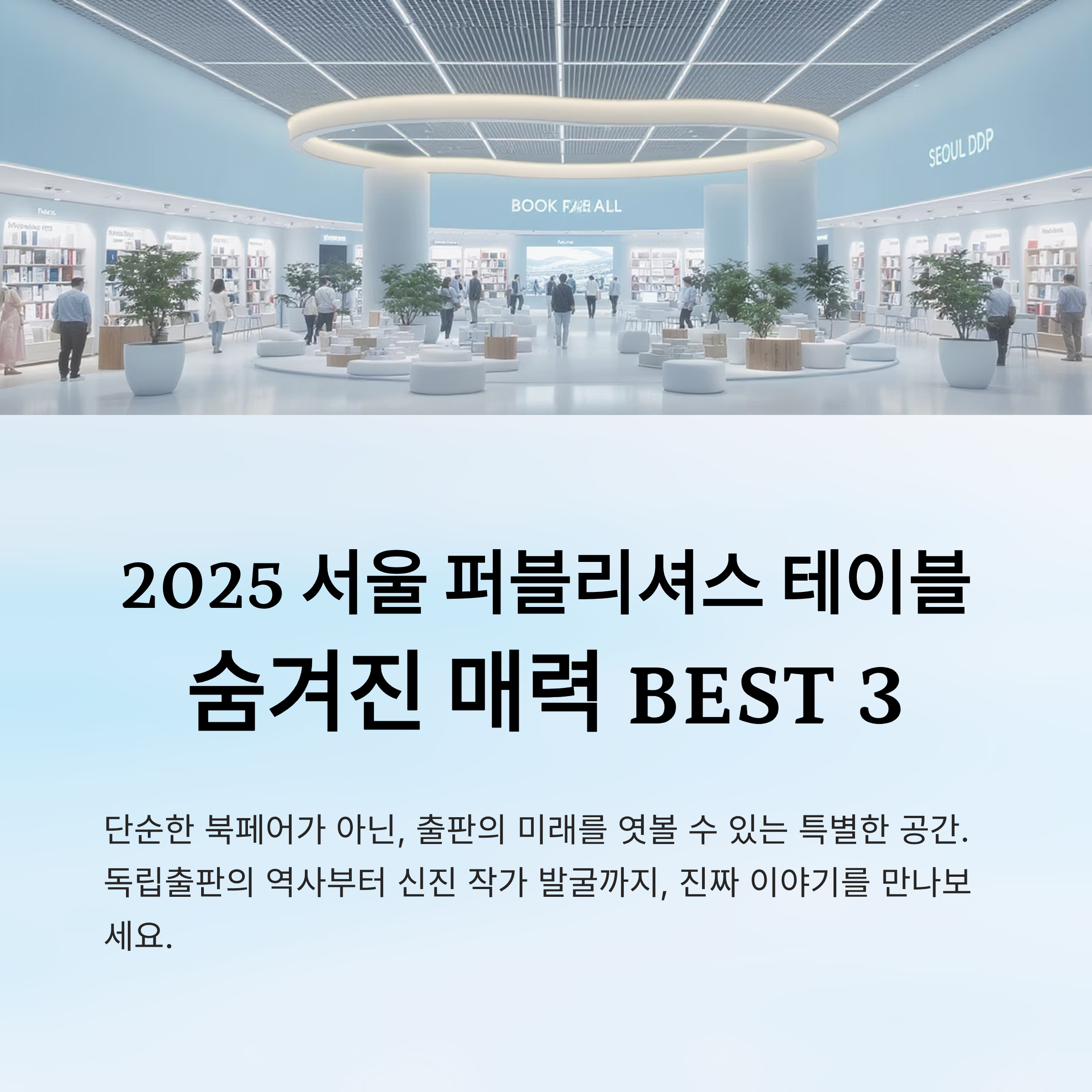 📚 2025 서울 퍼블리셔스 테이블은 단순히 책을 사고파는 행사가 아니에요. 이곳에는 ‘책’이라는 매개로 모인 다양한 창작자, 독립출판사, 그리고 책을 사랑하는 사람들이 함께 만드는 특별한 이야기들이 숨어 있어요. 이번 글에서는 아무도 몰랐던 그 ‘숨겨진 매력 BEST 3’를 중심으로, 진짜 퍼블리셔스 테이블의 깊은 세계를 함께 탐험해볼게요. 🎨