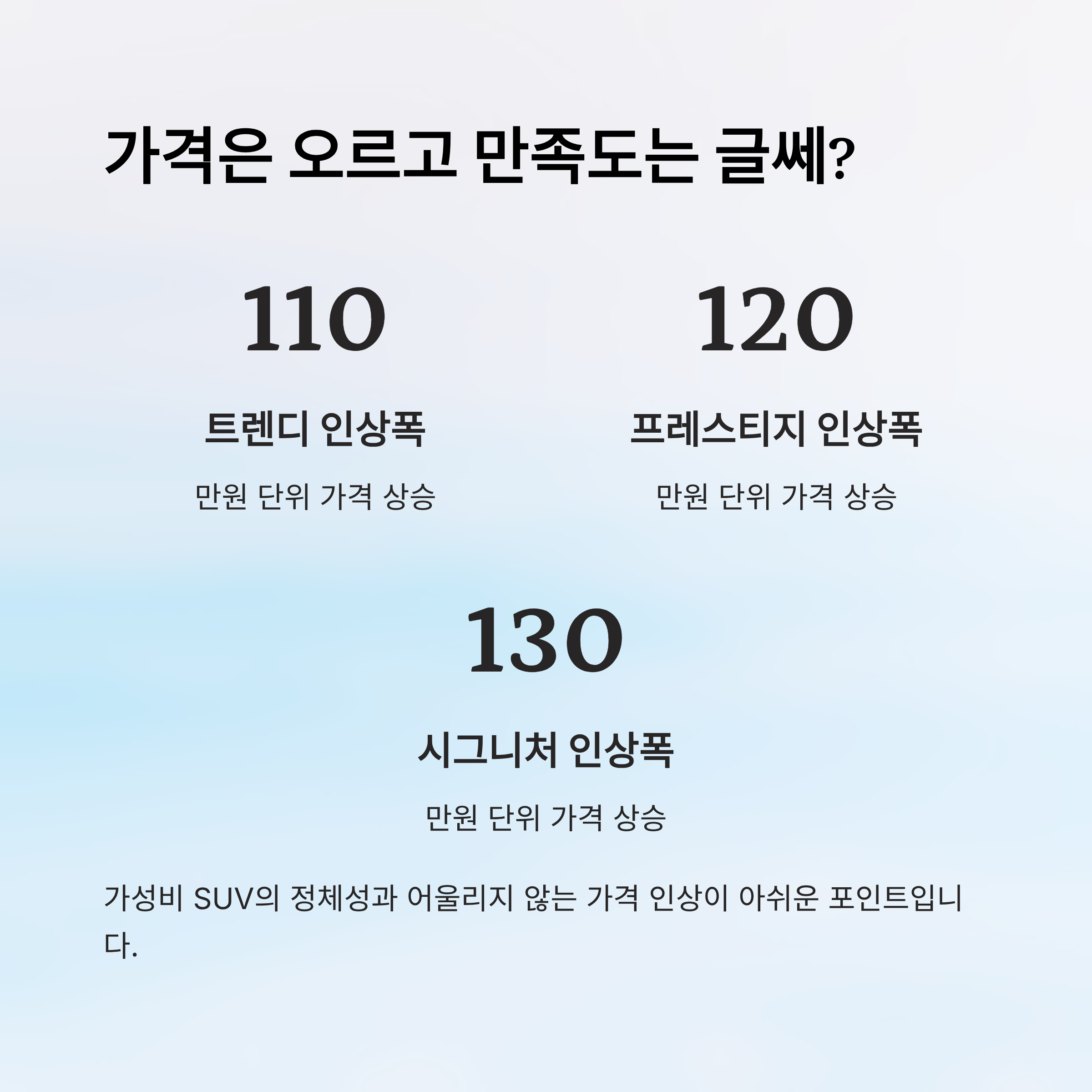사양 강화라는 명분은 있지만, 문제는 이 가격 인상이 체감 가치로는 잘 연결되지 않는다는 점이에요. 기존 구매자들 사이에서도 “옵션은 그게 그거인데 가격만 오른 것 같다”는 반응이 꽤 많아요.