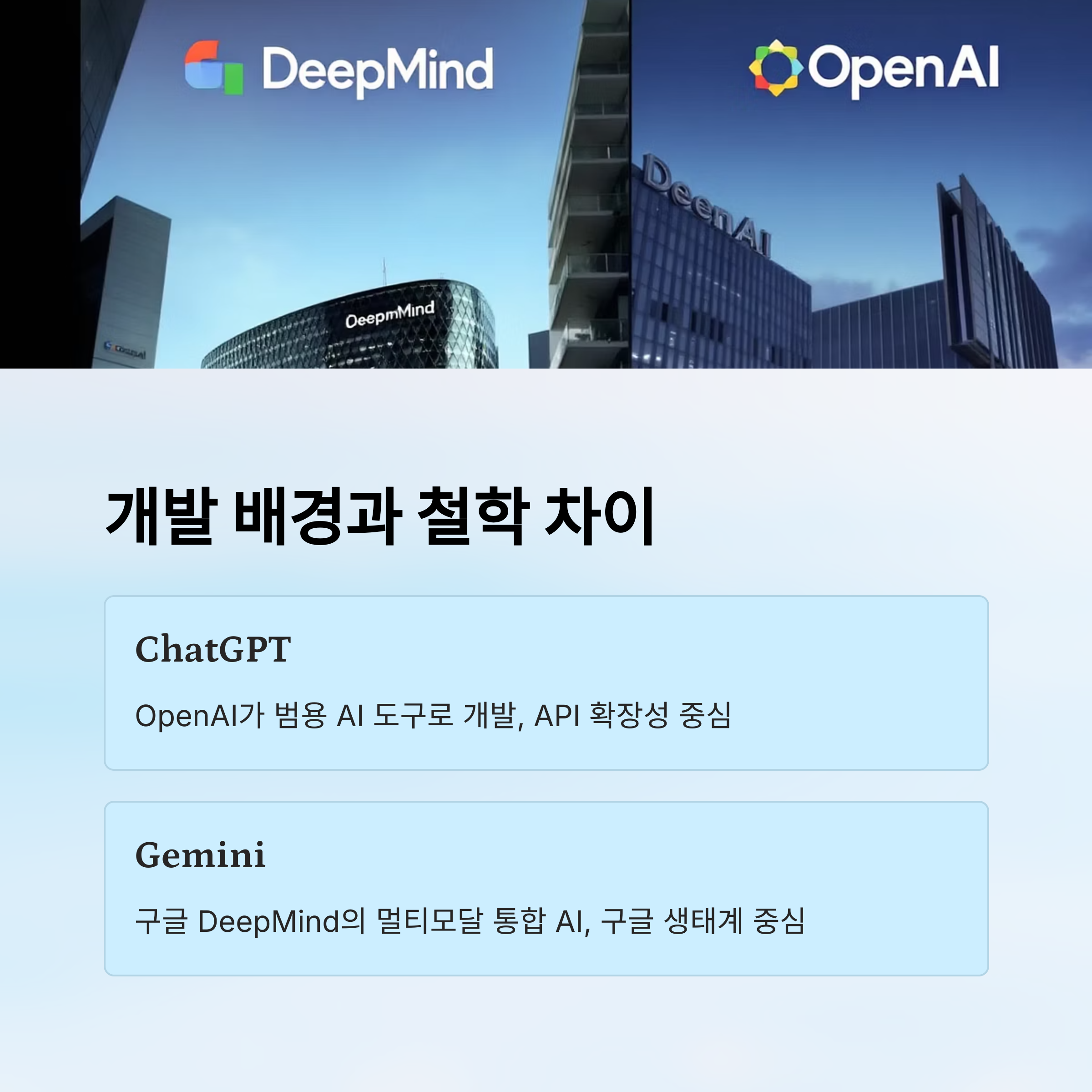 ChatGPT와 제미니는 모두 인공지능 언어모델이지만, 개발된 배경과 철학에서 분명한 차이가 있어요. ChatGPT는 OpenAI에서 개발되었고, 처음부터 인간의 언어를 자연스럽게 이해하고 생성하는 데 초점을 맞췄어요. OpenAI는 “모두를 위한 인공지능”이라는 철학 아래, AI의 민주화를 목표로 접근해 왔고, 그 결과 GPT 시리즈는 빠르게 대중화되며 다양한 서비스에 응용되었죠.